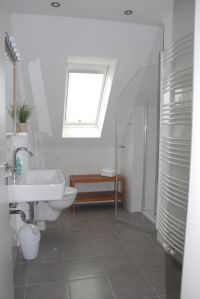 Im hellen Bad können Sie sich am besten in der ebenerdigen Dusche von Sand- und Schlickresten befreien.